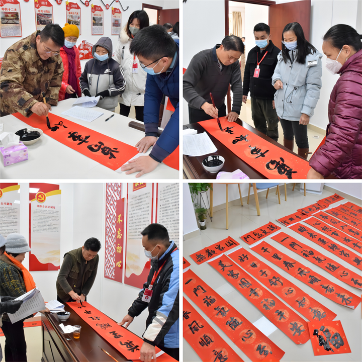 春節(jié)將至,為豐富小區(qū)業(yè)主文化生活,營造歡樂祥和的節(jié)日氛圍,1月16日上午,運營公司黨支部在賀州市城東新區(qū)公租房紅色物業(yè)示范點開展“紅色物業(yè)送春聯(lián) 墨香四溢暖人心”活動。活動邀請了多名市文聯(lián)、廣西書法家協(xié)會會員等優(yōu)秀書法家走進小區(qū),將紅紅火火和美好祝福送給廣大業(yè)主和群眾,用實際行動營造和諧、溫馨的新年氛圍。